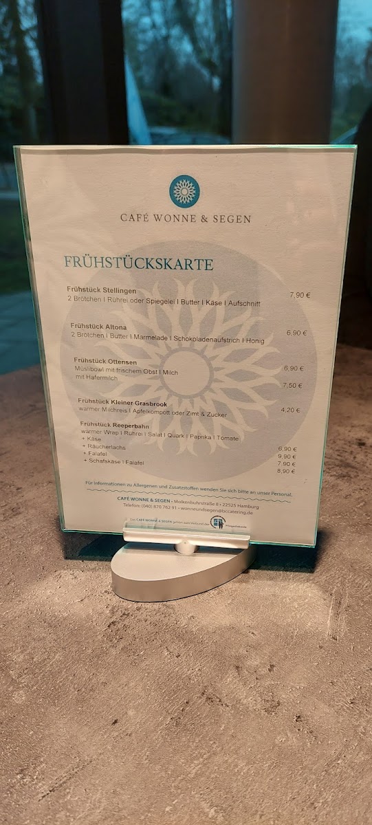 Welcome to Cafe Wonne & Segen, a hidden gem nestled in the charming neighborhood of Hamburg at Molkenbuhrstraße 8. Here, you'll discover a cozy atmosphere that perfectly complements their delightful offerings. This cafe is not just a place to grab a bite; it's a sanctuary where comfort meets quality.